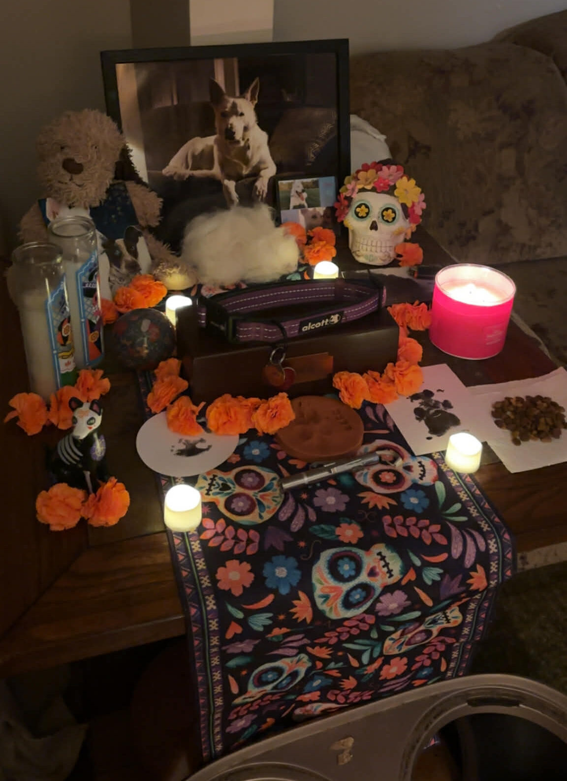 Día de los Muertos was “really personal” for Iñiguez this year, because her dog, Luna, passed away in June. Iñiguez had Luna since she was a baby; Luna was even her emotional support animal (ESA) when Iñiguez was a student at Albion. On Oct. 27, Iñiguez set up her ofrenda for Luna, and kept it dedicated to her dog for the remainder of the holiday. She put out kibble and a bowl of water for Luna, and would light a candle when she wanted her to visit, Iñiguez said.